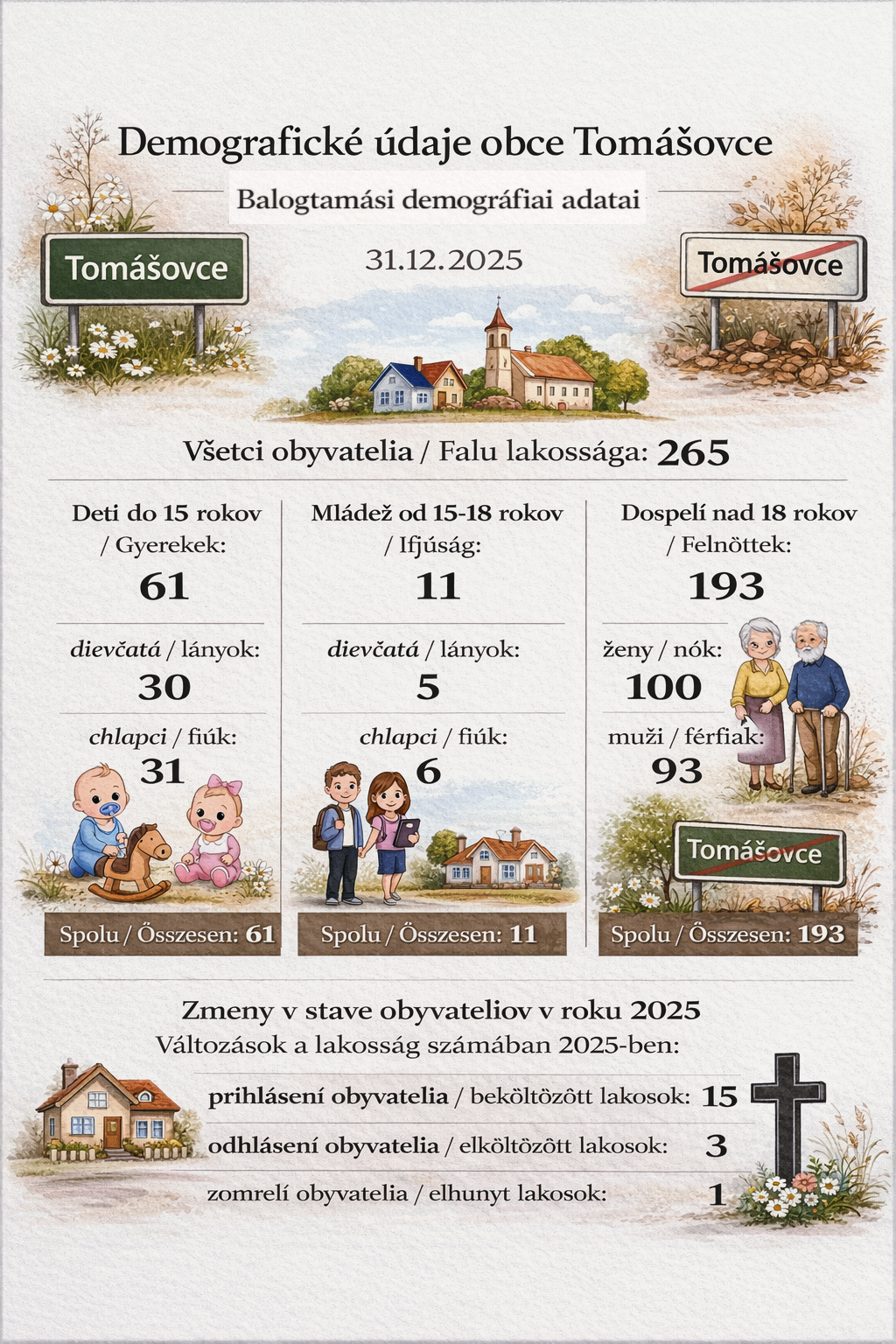 Demografické údaje obce Tomášovce - Balogtamási demográfiai adatai - 2025